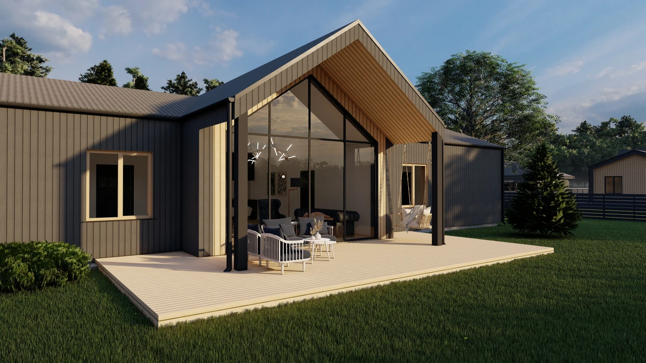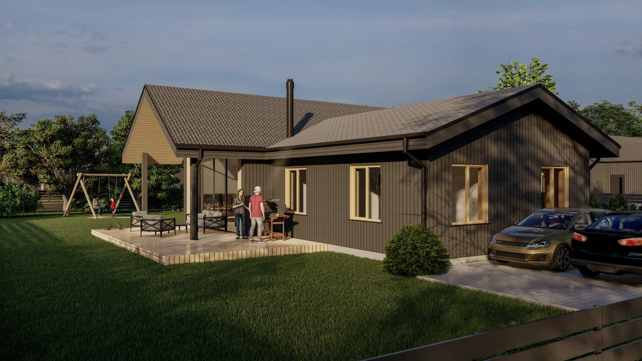 Mājas sētas pusē ir liela saulaina terase, kas piedāvā brīnišķīgu brīvdabas telpu.